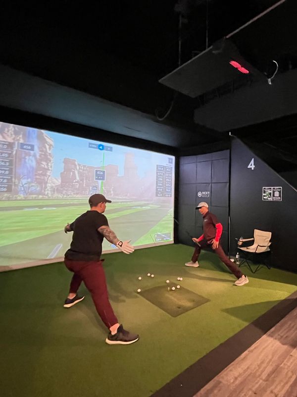 Coach Kumar working with a student to keep his back from moving up and down. Takeaway is steady but Not downswing which results in a Fat shot.